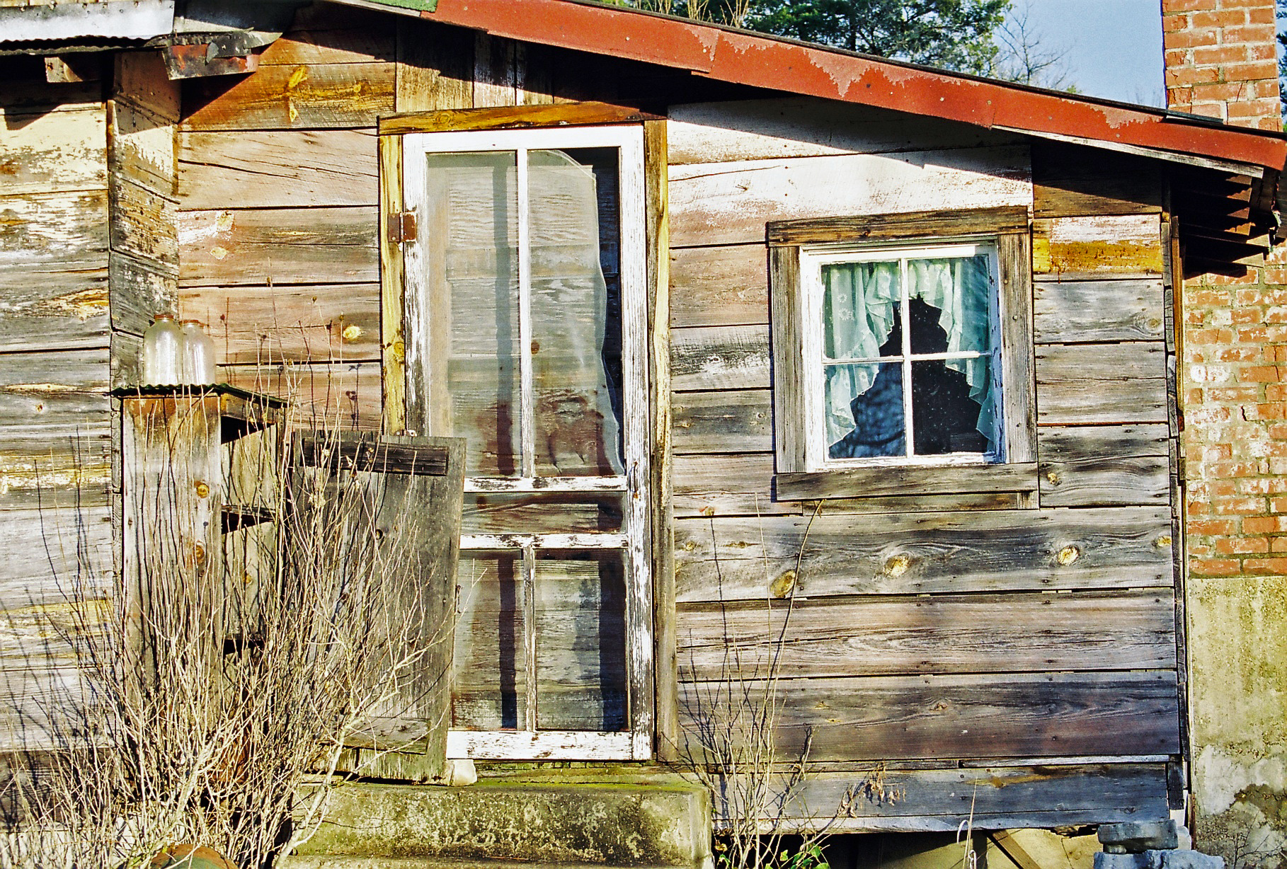 Taken on a rural road in the Ozarks, approximately 2000. If you look closely, you can see old milk bottles still on the shelf to the left of the door. For a close-up view, see MilkBottles. For a look at the accompanying outhouse (Photo of the Week, April 13, 2015 ), see Outhouse.