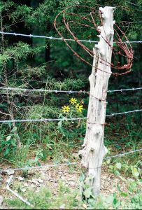 Summer is most assuredly on us, so I thought I’d pull out one of my favorite ‘summer shots’ for another view. This was taken lots of years back (circa 2001). I was on a walk and this scene caught my eye. Somehow the mixture of the old post, the barbed wire (some of it rusty) and the daisies just spoke to me. I still like it.