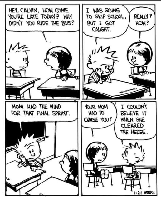 Cartoon of the Week Skipping school when you were a kid? I suspect everyone thought about it, and some may have done it. Calvin (from Calvin and Hobbes) tried it, of course. But as is often the case for Calvin, it didn’t go as planned.